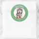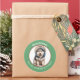 Une image d'un adorable petit chiot sibérien Husky Dog portant son sweat - shirt à capuche d'hiver est au centre de ce mignon sticker Holiday. L'image est encadrée dans une bordure circulaire verte qui contient votre texte personnalisé en blanc. Parfait pour les cartes de Noël, la correspondance et les forfaits cadeaux.