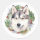Sticker Rond Sibérie Husky Christmas Wreath Festive Pup