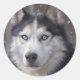 Cette peinture numérique représente un Husky sibérien debout sur la neige, sa fourrure brillant de reflets glacés tandis que le paysage hivernal s'étend sans fin derrière lui. Les yeux expressifs du chien attirent l’attention du spectateur.