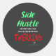 Danser la dernière folie de danse, le rythme de l'agitation, aide les ados ET les adultes à gagner de l'argent en plus de leurs revenus! De plus, contrairement à twerking, l'ancien groupe NE SERA PAS envoyé au bureau du directeur pour obtenir des suspensions parce qu'il est tellement adapté à l'âge ! L'expression sur ces autocollants ronds noirs, "side hustle", est en néon vert.