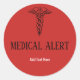 Sticker Rond Signal d'alerte Médicale Red Caduceus Texte person
