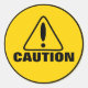 Sticker rond du panneau de prudence. Autocollants ronds jaunes personnalisables avec texte entièrement personnalisable "Attention" et triangle avec avertissement de point d'exclamation. Cet autocollant d'avertissement est entièrement personnalisable, ajoutez vos textes et images !