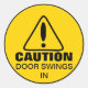 Attention Signale Porte Se Balancent Dans Un Sticker Rond. Autocollants ronds jaunes personnalisables avec des textes entièrement personnalisables "Attention" et "Portes pivotant" et triangle avec avertissement de point d'exclamation. Cette porte automatique balançant dans l'autocollant d'avertissement est entièrement personnalisable, ajoutez vos textes et images!