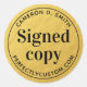 Les autocollants de la signature du livre qui comportent le texte "copie signée" entouré d'une mince bordure noire sur une image imprimée en dégradé doré arrière - plan. Texte personnalisé courbé en haut et en bas, par exemple le nom des auteurs et l'URL du site Web. Suivez-nous sur Instagram : @business.perfectlycustom et Facebook : @businessstationery pour les produits, nouvelles et ventes liés aux affaires.