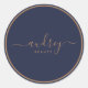 signature chic typographie marine bleu or rond autocollant avec une touche féminine classe avec votre nom général dans une police de police de style calligraphie et votre profession.