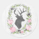 Sticker Rond Silhouette de cerf rustique Cameo de fleurs sur bo
