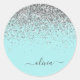 Sticker Rond Silver Aqua Turquoise Blue Girl Parties scintillan