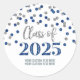 Sticker Rond Silver Blue Confetti Graduation 2025