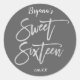 Sticker Rond Silver Foil Sweet 16 Seteen Modern Script Party