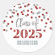 Classe de nom personnalisé de 2025 autocollants de graduation avec motif de confetti argent et rouge.