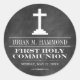 Cet autocollant de style tableau noir First Holy Communion affiche une typographie qui ressemble à de la craie sur un tableau noir. Le texte customisé est disposé sous une croix proéminente. Grande comme enveloppe scellée ou personnaliser à utiliser avec faveurs ou comme cadeau. Disponible avec des produits correspondants.