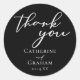 Simplement chic et élégant, notre collection de mariage hivernal minimaliste présente une typographie cursive élégante pour votre événement moderne. Impressionnez vos invités avec cet autocollant de remerciement de mariage en soirée audacieux avec un script blanc simple qui lit Merci au-dessus des noms des mariés et de la date du mariage. L'ajout parfait à un cadeau de réception haut de gamme.