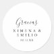 Ce sticker simple espagnol remerciement mariage faveur classique rond collant est parfait pour un mariage moderne. Le design sobre et élégant présente une typographie de script classique et sophistiquée en noir et blanc. Faites de l'autocollant votre propre étiquette en incluant vos noms, l'événement (s'il y a lieu) et la date. Ces autocollants peuvent compléter une réception de mariage, une douche nuptiale, ou tout événement!