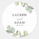 Keep your wedding details timeless and refined with this simple eucalyptus wedding sticker. Designed with soft watercolor greenery and clean, modern typography, this minimalist sticker is perfect for sealing envelopes, decorating favors, or adding a subtle botanical touch to your wedding stationery. Elegant and versatile, it suits modern, rustic, and greenery-themed weddings effortlessly.