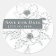 Faites une déclaration avec ces scellés d'enveloppe ronde classiques "Enregistrer la date". Elles présentent de belles fleurs d'anémones grises dessinées à la main sur un arrière - plan blanc. Il dispose d'un bloc blanc parfait pour écrire votre date mariage ou tout détail, ce qui fait de ces autocollants un design moderne. Ces étiquettes sont parfaits pour améliorer vos enveloppes, faveurs, cadeaux ou tout courrier. Ajoutez vos coordonnées de mariage ou toute autre occasion spéciale. Consultez les articles correspondants dans mon magasin zazzle.