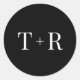 Sticker Rond Simple Mariage noir et blanc monogramme