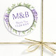 Sticker Rond Simple Monogramme Élégant Mariage Floral Violet