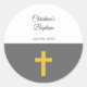 Sticker Rond Simple, Noir avec une Croix d'or Baptême