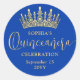 Sticker Rond Simplement élégant Quinceañera Crown Royal Blue &
