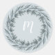 Cet autocollant de mariage simple et élégant comprend une simple couronne d'eucalyptus aquarelle avec votre initiale au centre, sur un arrière - plan gris bleu doux pour un look minimaliste étonnant.