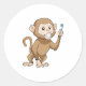 Sticker Rond Singe avec brosse à dents