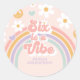 Sticker Rond Six est Vibe Retro Rainbow 6e anniversaire