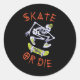 Sticker Rond Skate ou die Skeleton Skateboarder