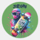 Célébrez en style avec notre autocollant rond monogrammé personnalisé, avec un patineur tendance habillé et tenant son skateboard. Cet autocollant vibrant présente le nom du célébrant d'anniversaire dans une police audacieuse et attrayante, capturant parfaitement l'esprit festif. Idéal pour tous les amateurs de skate, cet autocollant ajoute une touche amusante et personnelle à la célébration d'anniversaire.