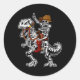 Sticker Rond Skeleton Rides Dinosaures Skeleton Cowboy Bone Hal