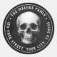 Halloween return address labels featuring a skull on a black and dark gray, slightly gritty background. Template fields for your family name and return address.