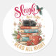 A festive and cheerful Christmas design showcases an adorable black kitten nestled on a stack of books. Beside the books are vibrant poinsettias, pine branches, holly berries, and a steaming cup of cocoa. Golden stars frame the scene, adding a magical touch. The colorful text reads, "'Sleigh all day, read all night." This delightful design is featured on a variety of products, making perfect gifts for book lovers.