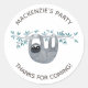 Couleur d'eau mignonne et capricieuse paresse jungle thème fête d'anniversaire merci stickers. Customisez le nom et le texte pour convenir à votre célébration. Art original de Nic Squirrell