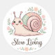 This charming sticker features a delicate pastel snail nestled within a beautiful floral border, perfectly capturing the essence of slow living. The elegant cursive script beneath the illustration gently reminds you to embrace a calm, intentional lifestyle. Ideal for decorating laptops, journals, water bottles, and planners, this design appeals to lovers of cozy aesthetics, cottagecore vibes, and mindful living. Add a touch of whimsy and serenity to your everyday items with this soft, nature-inspired sticker.