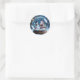 A Christmas sticker with a beautiful snow globe with Santa Clause, Reindeer and a Christmas tree.