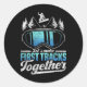 Sticker Rond Snowboard Snowboard Faisons les premières pistes T