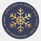 Sticker Rond Snowflake Navy Blue Faux Gold Elegant Christmas