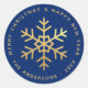 Sticker Rond Snowflake Royal Blue Elegant Faux Gold Christmas