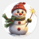Un bonhomme de neige festif orné d'un casquette rouge et d'une écharpe pendant un hiver enneigé.