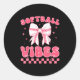 Sticker Rond Softball Vibes Softball Couqette Groovy Softball G