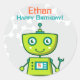 Le design personnalisé de la fête d'anniversaire du robot vert pour les autocollants comprend du texte personnalisé et un jeu de couleurs vert, orange, bleu et gris.