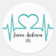 Autocollant rond classique médical docteur infirmière ligne d'ECG battement de cœur. Impression de battement de cœur d'ECG turquoise, pour une remise de diplôme d'école d'infirmières ou d'école de médecine, une pratique médicale et plus encore ! Non seulement vous pouvez changer les couleurs de police (et le texte bien sûr), mais vous pouvez également changer les couleurs de fond qui changeront la couleur de la ligne de battement de cœur ! Vous pouvez l'adapter à la couleur préférée de votre médecin ou infirmière, ou aux couleurs de l'école si vous le souhaitez.