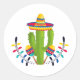 Sticker Rond Sombrero portant Cactus avec Maracas