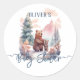Sticker Rond Son Baby shower Froid Hors Forêt D'Hiver Ours
