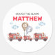 Sonnez l'alarme Sticker rond classique Anniversaire des pompiers Préparez-vous à Sonner l'alarme et fêtez le grand jour de votre petit pompier! Dotés d'un pompier à chien dalmate héroïque et d'un camion de pompiers flamboyant, ils ont préparé le terrain pour une fête pleine d'action. La conception détaillée va susciter l'enthousiasme chez les amis de votre enfant pour rejoindre l'aventure. Ce design fera de votre soirée un événement exceptionnel, avec un thème unique et de lutte contre l'incendie qui fera gronder les enfants d'excitation. Ne manquez pas l'occasion de rendre votre journée de héros inoubliable !