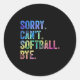 Sticker Rond Sorry Can't Softball Bye Funny Softball Lover