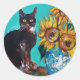 STICKER ROND SOUCHES AVEC CHAT NOIR EN TURQUOISE BLEUE