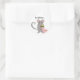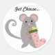 Une mignonne souris de Noël avec un corps gris et des oreilles roses tenant un bas rose plein de fromage. Un dicton mignon, peut être changé comme souhaité.
