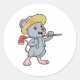 Sticker Rond Souris en fermier avec Ax et Casquette