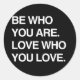STICKER ROND SOYEZ QUI VOUS ÊTES. AIME QUI TU AIMES