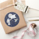 Moon, mignon homme de l'espace avec le drapeau et la péniche "It's a Boy !" sur un arrière - plan bleu nuit avec des étoiles flottantes.